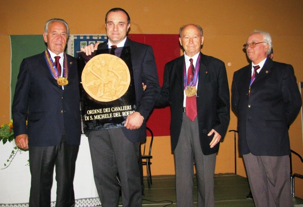 La festa di San Michele è stata anche l’occasione più propizia per la presentazione ufficiale dei rinnovati stemma e distintivo dell’Ordine. Lo stemma è rappresentato da un altorilievo in terra cotta rappresentante l’Arcangelo San Michele sullo sfondo della ruota, simbolo del Roero. La pregevole opera è stata realizzata dal cavaliere e professore Gianni Cerrato, diplomato in scultura e pittura presso l’Accademia Albertina di Torino.