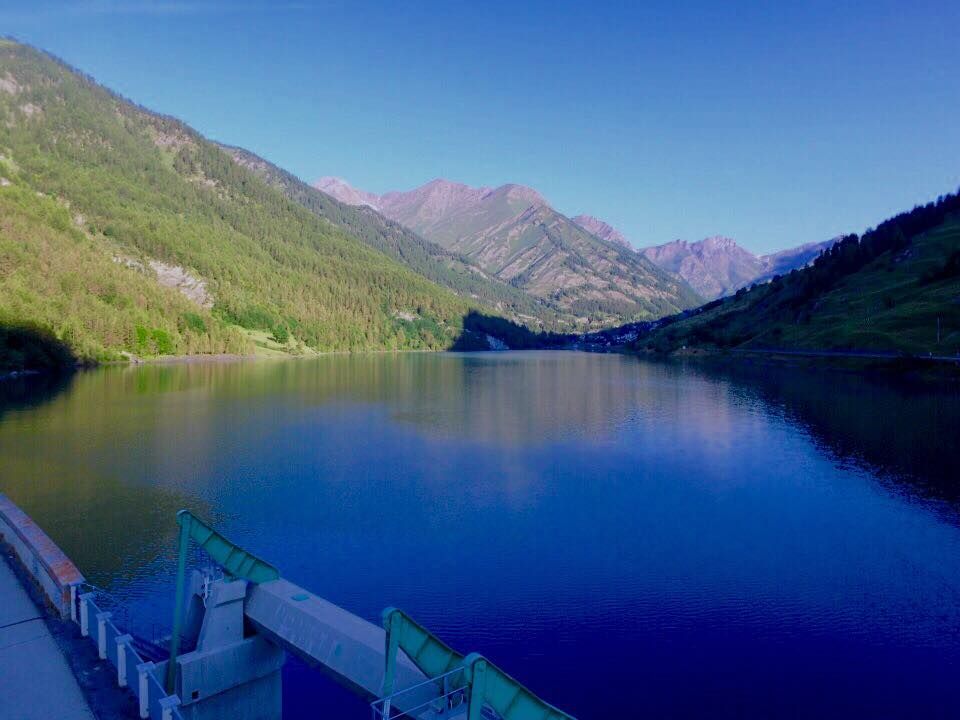 La diga, collegata alla centrale idroelettrica di Casteldelfino e realizzata nel 1942, ha richiesto l'abbattimento totale della piccola frazione denominata Chiesa, di cui proprio l'edificio affiorante (molto probabilmente l'ultimo pezzo ancora "intatto") faceva parte.