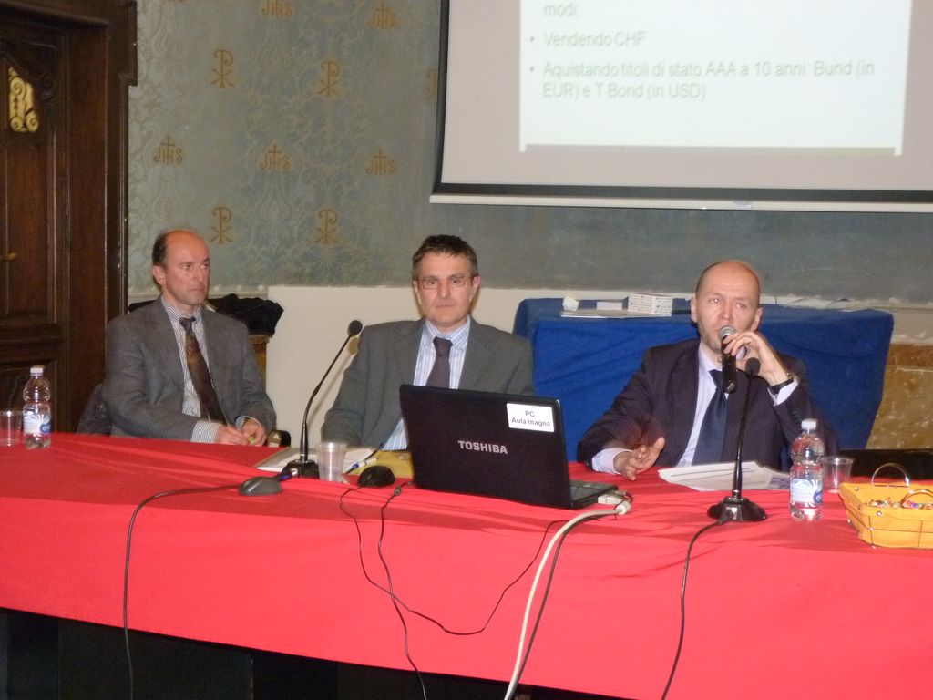 Dopo un breve intervallo si è passati all'analisi dei mercati finanziari con l'intervento del dott. Mauro Tibaldi, analista dell'ufficio titoli della Banca di Cherasco. Con un excursus dalla crisi dei mercati americani fino all'attuale situazione economica, sono stati spiegati in maniera chiara i motivi della crisi finanziaria e i possibili scenari futuri. Anche in questo caso la risposta del pubblico è stata molto competente, le domande poste pertinenti e precise a dimostrazione dell'ottima cultura del risparmio che da sempre contraddistingue il nostro territorio.