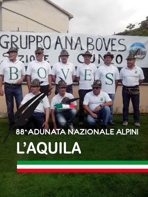 A sfilare sono state ben una quarantina di «Penne Nere» bovesane. Il «grosso» del gruppo è partito, in pullman, all’alba di venerdì 15 ed arrivato alla meta (bella struttura della frazione Tempera, vicino Paganica) nel tardo pomeriggio (il viaggio, seguendo la direttrice adriatica, durava ben nove ore). A loro, quest’anno, oltre alla «Penna Nera» Mario Giuliano, ex Primo Cittadino, si sono aggregati ben tre componenti della Giunta in carica: Enrica Marianna Di Ielsi (presenza fissa da qualche anno, autrice di varie foto), il sindaco Maurizio Paoletti e Livio Rossi (Amico degli Alpini). Sempre presente è stato il ricordo dello scomparso capogruppo Livio Vallauri (morto improvvisamente l’autunno scorso, neppur cinquantenne), sempre presente alle «Adunate» Il suo cappello ha preceduto il gruppo nella sfilata e sull’accampamento troneggiava striscione in sua memoria.