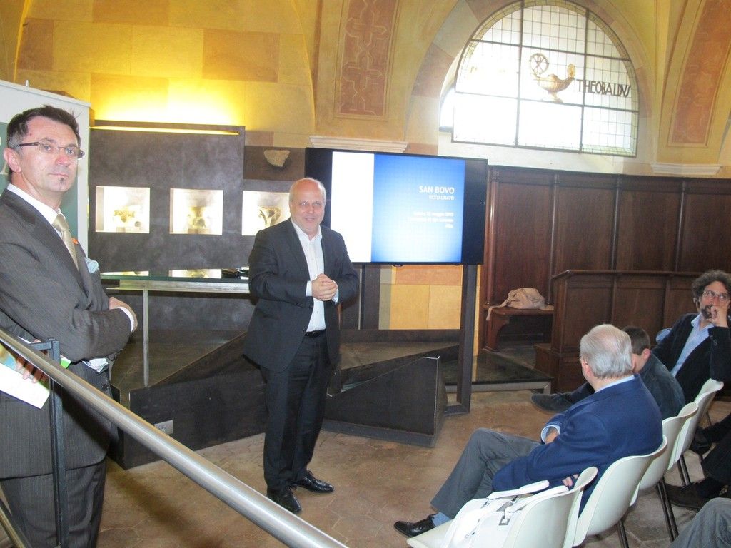 Dopo i saluti iniziali nella Cattedrale di San Lorenzo è stata scoperta la pala d’altare restaurata. L’opera dedicata a San Bovo, protettore della campagna, è stata realizzata nel 1872 dall’artista Luigi Morgari nato a Torino nel 1857. Alla cerimonia sono intervenuti anche Marco Fraire Capo Delegazione del FAI di Cuneo, Andreanna Eusebio Gruppo Fai Alba, don Valerio Pennasso Direttore dell’Ufficio Beni culturali della Diocesi di Alba, Delegato regionale Cei per i Beni culturali ecclesiastici del Piemonte, don Pennasso è stato nominato da poco anche Direttore dell'Ufficio Nazionale per i beni culturali ecclesiastici dal 1 settembre 2015.