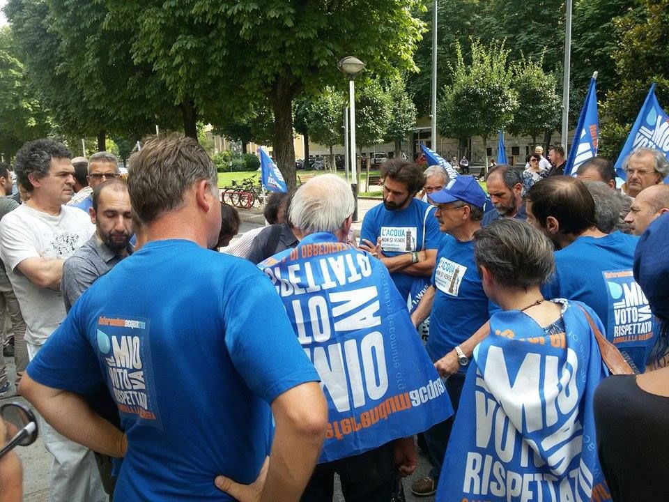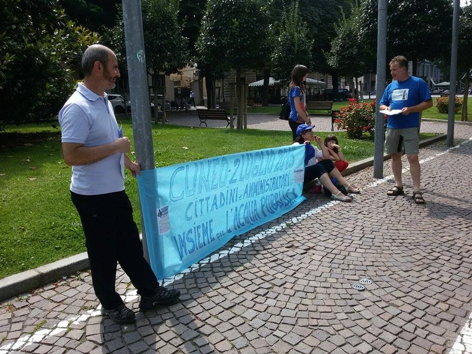 Davanti al Palazzo della Provincia di Cuneo si sono riunite numerose persone che manifestano a favore della gestione pubblica dell'acqua, Oreste Delfino del Comitato Cuneese Acqua Bene Comune ha affermato: "Il diritto al voto spetta a tutti i sindaci e non solo a 15 persone che si riuniscono privatamente, abbiamo chiesto di mettere a votazione la modifica dell'articolo 16 della convenzione vigente. Un servizio pubblico deve essere gestito da una società pubblica."