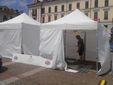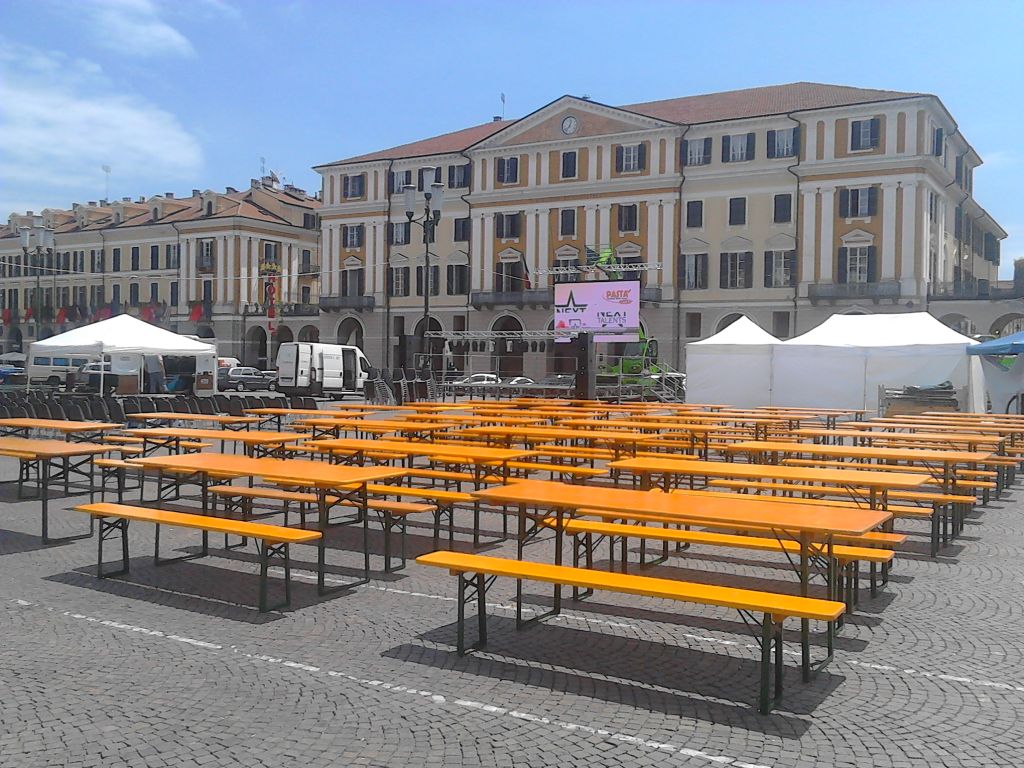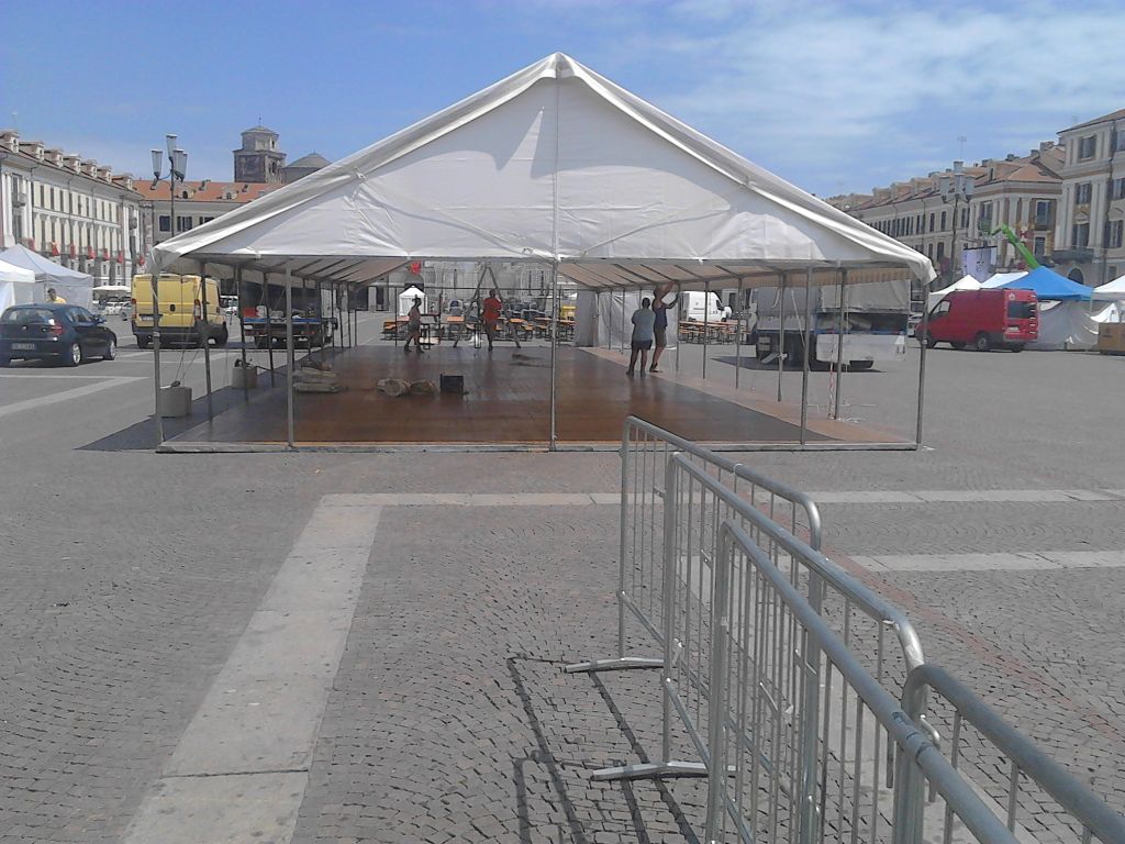 Fin dalla prima mattinata Piazza Galimberti si è vista costellata di stand, tavoli, sedie e panchine, che nei prossimi quattro giorni daranno asilo ai cuneesi interessati alle diverse attività proposte dal programma.