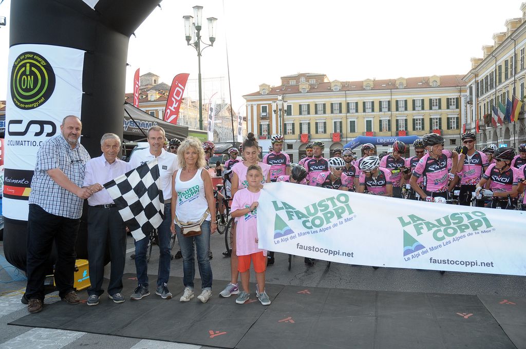 La granfondo Fausto Coppi Le Alpi del Mare 2015, una delle più spettacolari e difficili maratone ciclistiche d’Europa. Due i percorsi: una media fondo di 111 km e 2500 m di dislivello e una granfondo di 177 km con 4125 m di dislivello.