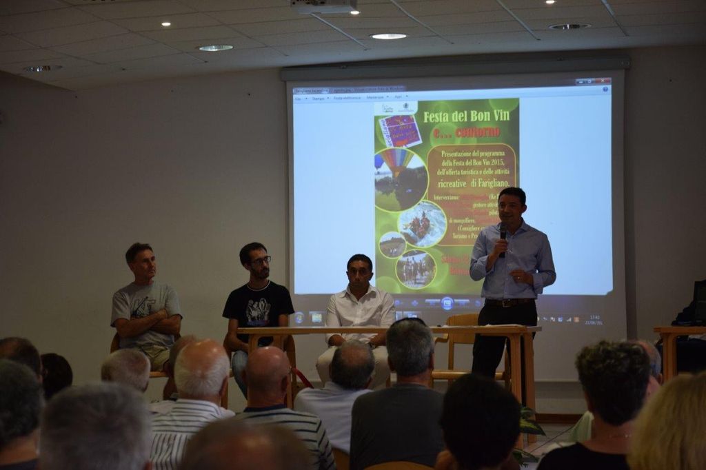 Per presentare il programma della 65^ edizione della Festa del Bon Vin, l'offerta turistica, le attività sportive e ricreative e le strutture ricettive del Comune di Farigliano sono intervenuti il Sindaco di Farigliano Geom. Mirco Spinardi, il Consigliere Comunale con delega al Turismo e Promozione Gerardo Logrippo, Miki Gramaglia dell'A.S.D. KE Rafting di Demonte (Valle Stura), Stefano Marchetti dell'A.S.D. Cascina Galli di Farigliano, Gianfranco Orlando del Balloon Team Italia e il Consigliere Comunale con delega allo Sport Danilo Mancardi.
