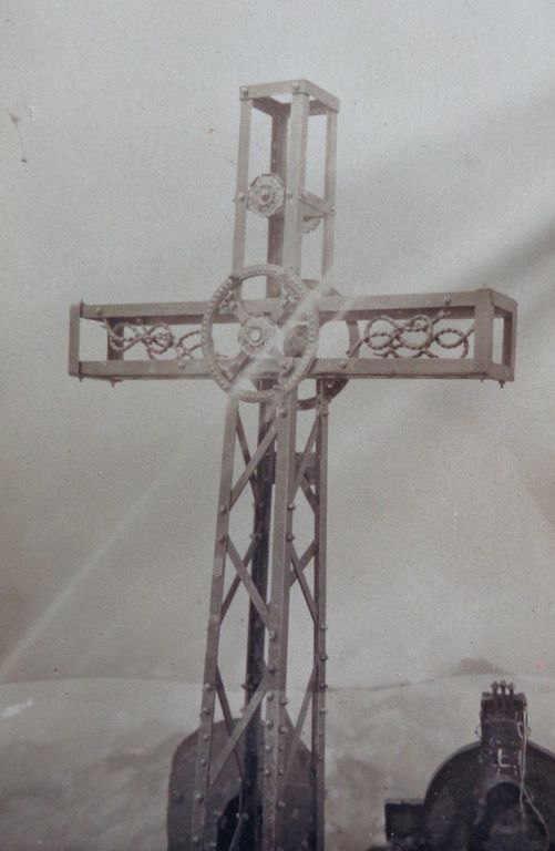 Pesante circa un quintale ed alta 2,90 metri, era stata costruita dalla ditta Luigi Tribaudino e Figli (i cui eredi, oggi in Argentina, sono informati dell’evento e vi partecipano con molta emozione, seppure a distanza); venne portata fino a Crissolo a bordo di un camion messo disposizione dal Calzaturificio Eula e,smontata in 60 pezzi, fu poi portata a braccia dai ragazzi, circa una ventina, che erano accompagnati dalle guide Claudio e Giovanni Perotti. Con loro, la vera anima dell’impresa, il ventottenne teologo Bruno Garavini (Firenze, 1897 – Torino, 1944), vicecurato di San Giovanni Battista; ed un teologo-alpinista di comprovata esperienza, don Secondo Maria Carpano Vercellone (Torino, 1883 – 1953), membro del CAAI (Club Alpino Accademico d’Italia).
