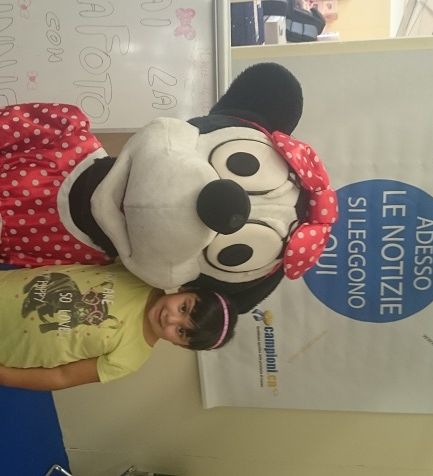 In allegato le foto dei primi due giorni di presenza di 'Minnie' al nostro stand con i bambini che si sono fermati per un 'simpatico click'
