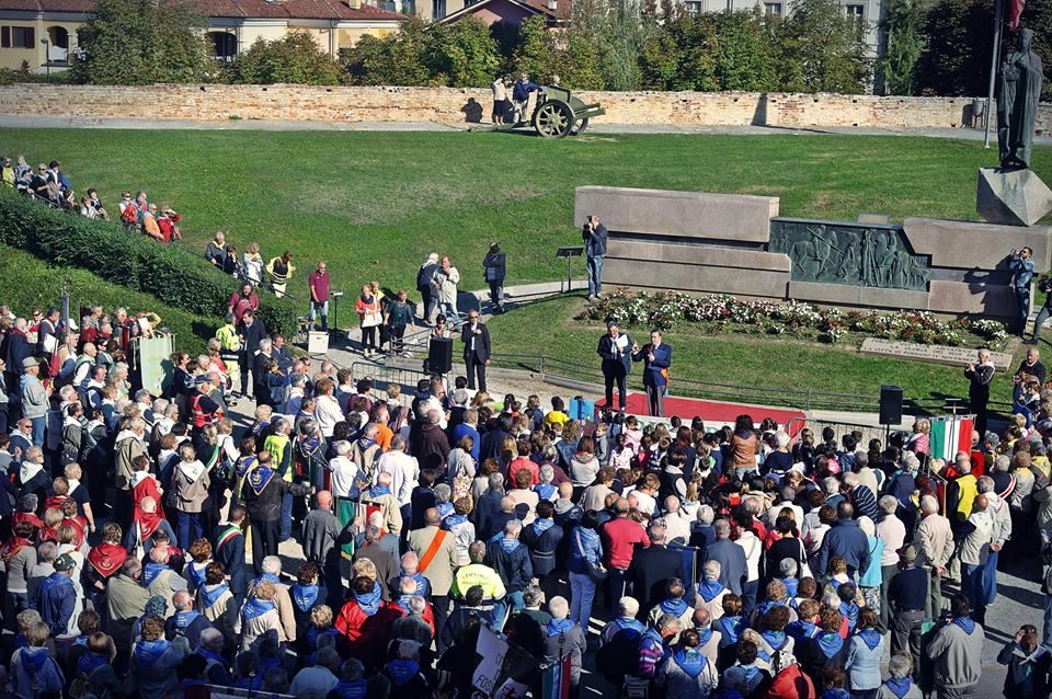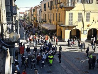 Questa mattina via Roma offriva un colpo d’occhio incredibile. La sfilata, aperta dalla fanfara dei bersaglieri in pensione e dai bambini delle scuole dell’infanzia e primarie, era talmente lunga che quando la fanfara ha raggiunto il Duomo dopo aver percorso il perimetro Via Cavour, Piazza Castello, Via Mazzini, Via Roma, gli ultimi gruppi non avevano ancora imboccato Via Cavour.