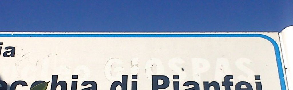 Osservando attentamente, si nota inequivocabilmente la presenza “aliena” di una qualche “scritta precedente” (lettere adesive che paiono essere state staccate ed hanno lasciato una marcatura evidente) che certamente sfugge a chi passa di lì in fretta, in auto, senza soffermarsi. Nulla di rilevante, in fondo, ma di certo il fatto desta curiosità.
