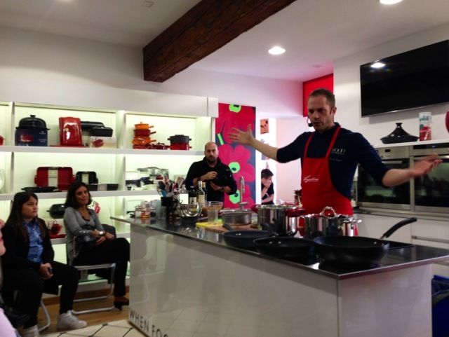 Simone Rugiati, il celebre chef conduttore del programma tv “Cuochi e Fiamme”, ha fatto il pienone ieri nella cucina di “Fontana Liste Nozze” di Cuneo con il suo show cooking per la Lagostina, davanti a una platea sessanta persone (tutte donne, dai 10 anni in su). Rugiati, 34 anni, ha precisato che il suo non era un vero e proprio “corso di cucina”, piuttosto una chiacchierata a 360 gradi su “un sacco di cose che non c'entrano necessariamente con la ricetta”. Che consisteva in due piatti di pesce: totani su crema di ceci e paccheri alla coda di rospo.