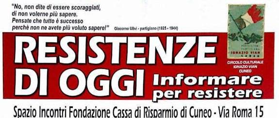 Al via l’appuntamento autunnale del ciclo di incontri “Resistenze di Oggi – Informare per Resistere” organizzato dal Circolo Culturale Ignazio Vian di Cuneo, con il sostegno della Fondazione CRC e il Patrocinio di Regione Piemonte e Città di Cuneo.