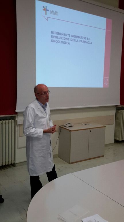 Per illustrare al pubblico le caratteristiche e le funzioni dell’Ufa, sono state proiettate alcune diapositive, illustrate a loro volta dal farmacista dott. Ezio Carignano.L’Ufa è l’unità in cui sono centralizzate le attività di preparazione e manipolazione dei farmaci chemioterapici. Si tratta di una struttura ad atmosfera controllata (in cui vengono regolati sia la pressione, sia l’inquinamento particelle), dotata di cappa a flusso laminare.
