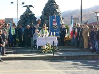 Dopo il ritrovo in Piazza Borgna davanti al monumento ai caduti, l’alzabandiera, la deposizione di una corona di alloro al monumento ai caduti, don Mario Vincenti ha celebrato una Messa “al campo”, di fronte al monumento che ricorda i caduti ed i dispersi di tutte le guerre, presente il sindaco Bruno Allasia, conclusasi con il “silenzio fuori ordinanza” (magistrale come sempre l’assolo di tromba dell’alpino Aldo Felizia).