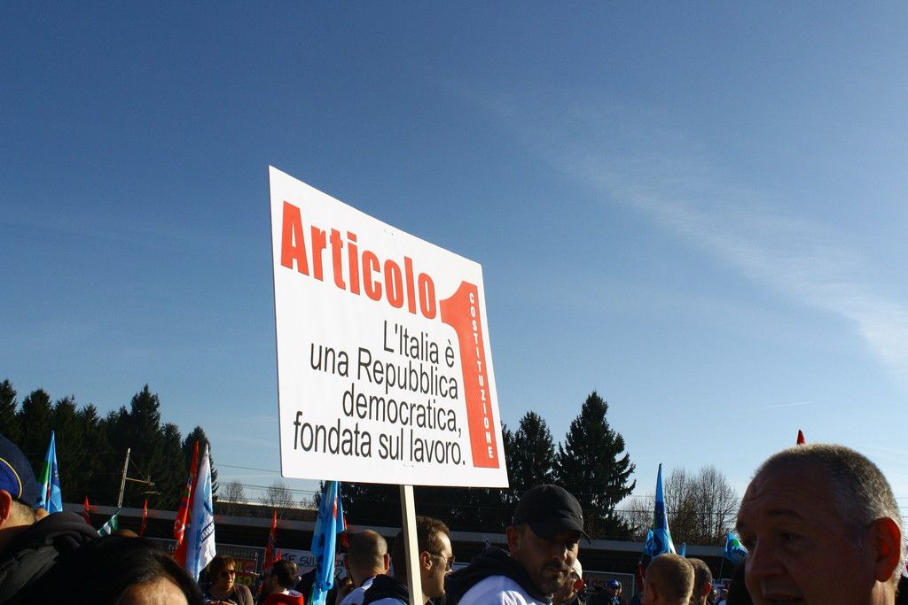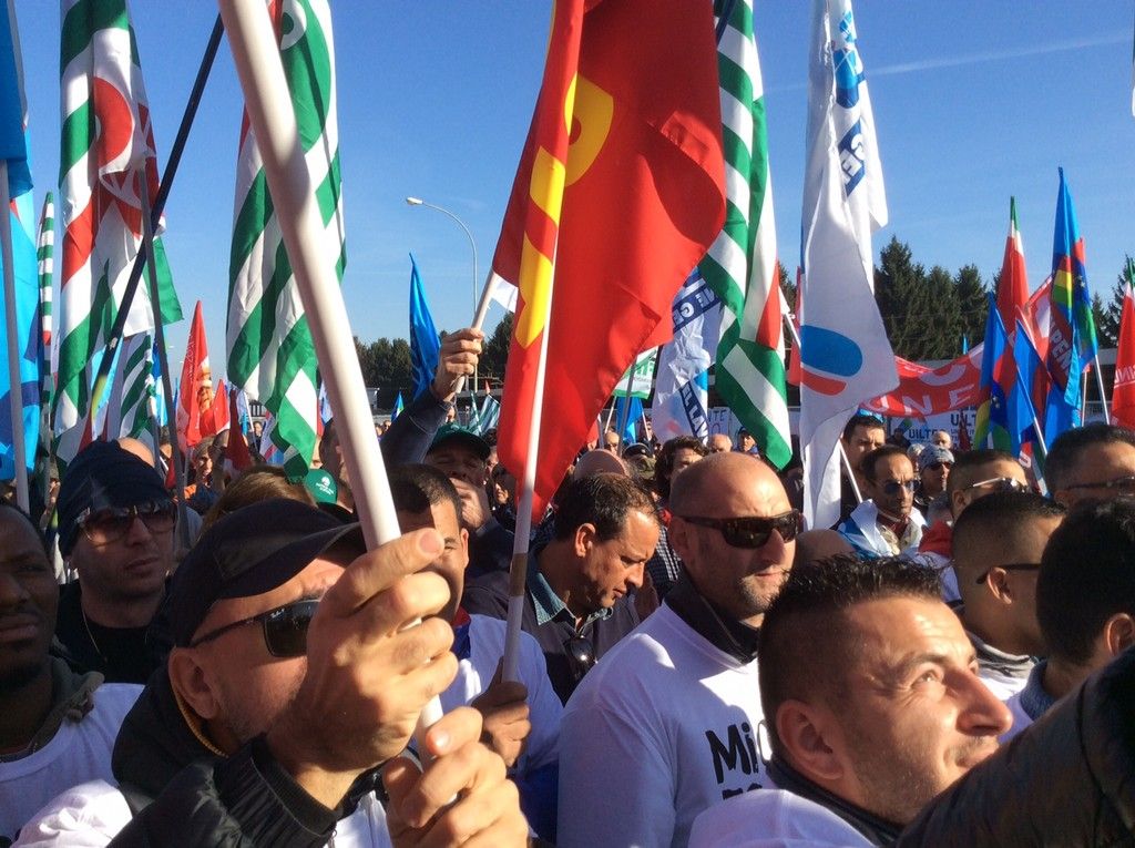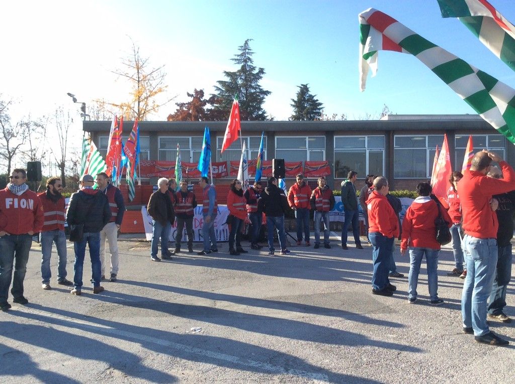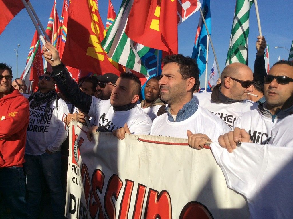 Sul palco si alternano le rappresentanze sindacali dei vari stabilimenti.