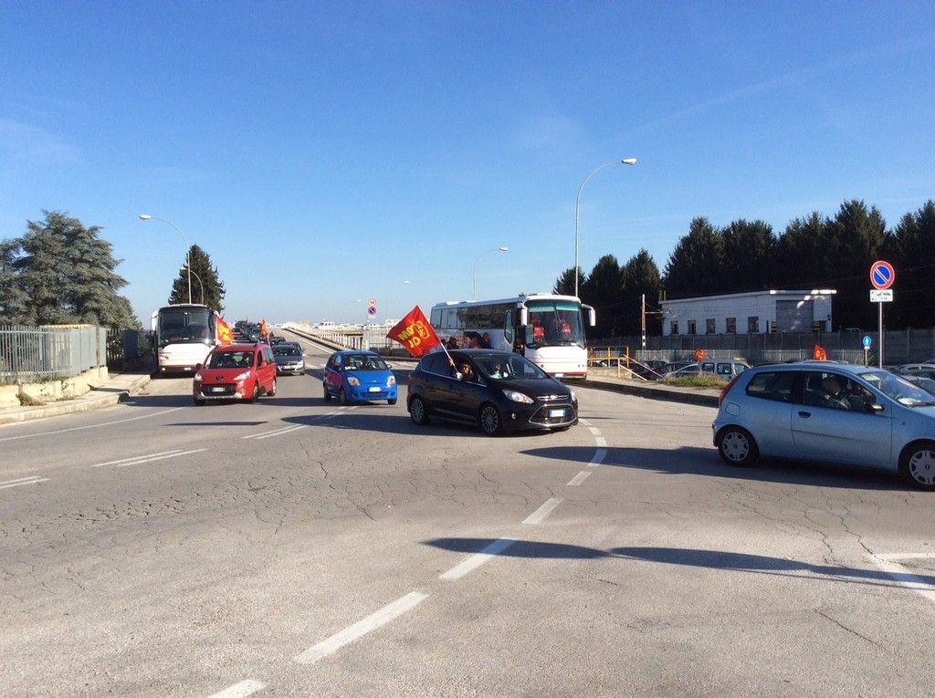 La ss20 è attualmente bloccata tra Ronchi, dove ha sede lo stabilimento Michelin dal quale è partito il corteo, e Madonna dell'Olmo. Il traffico è in tilt.