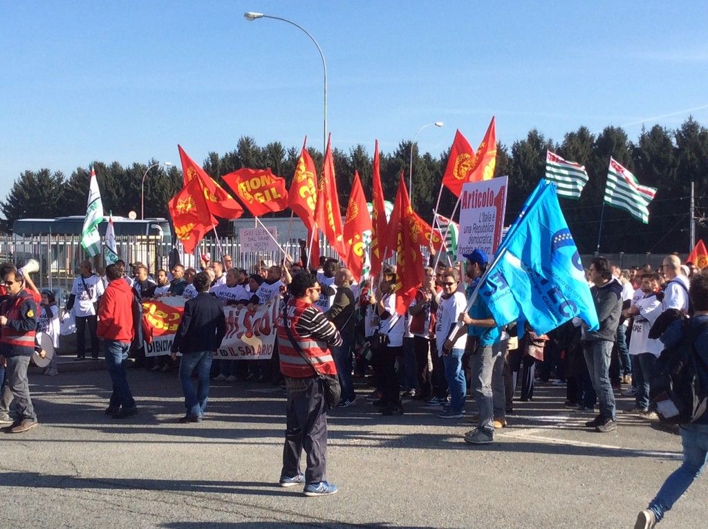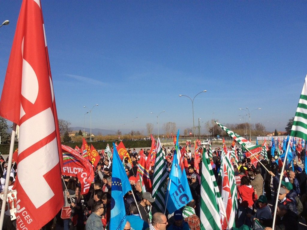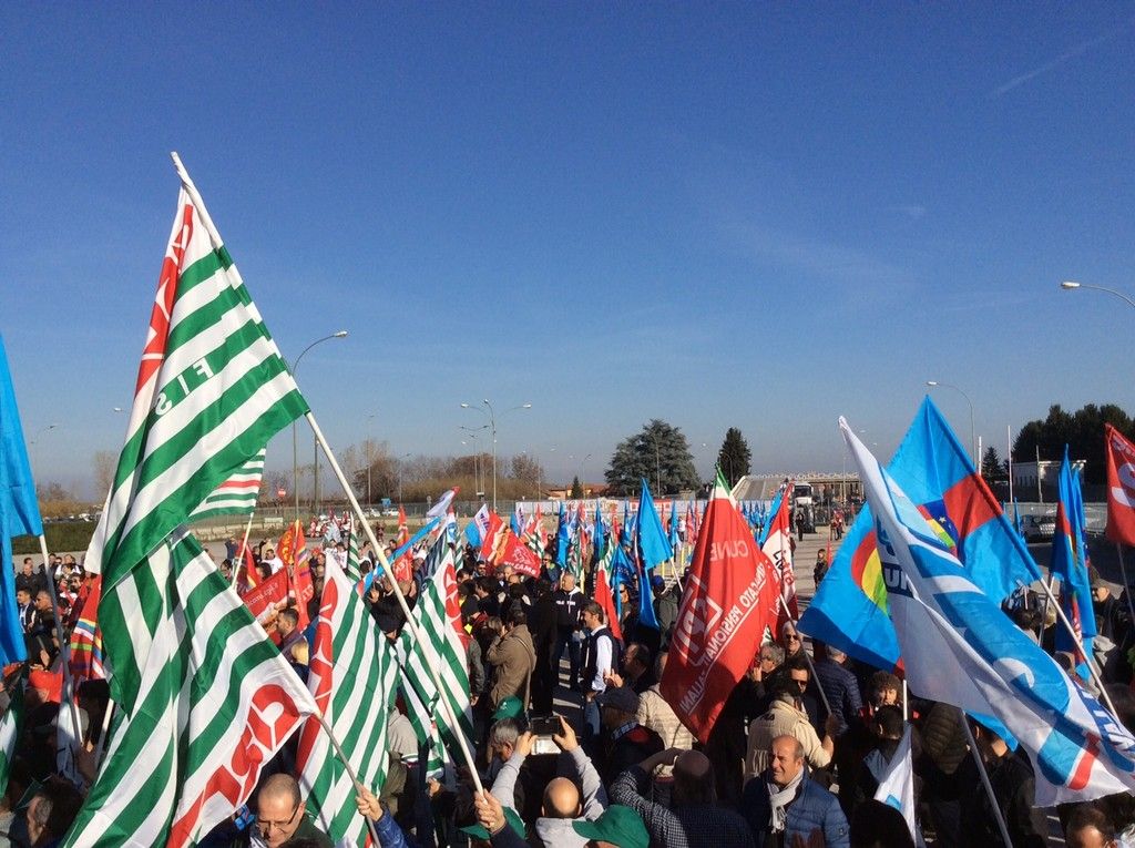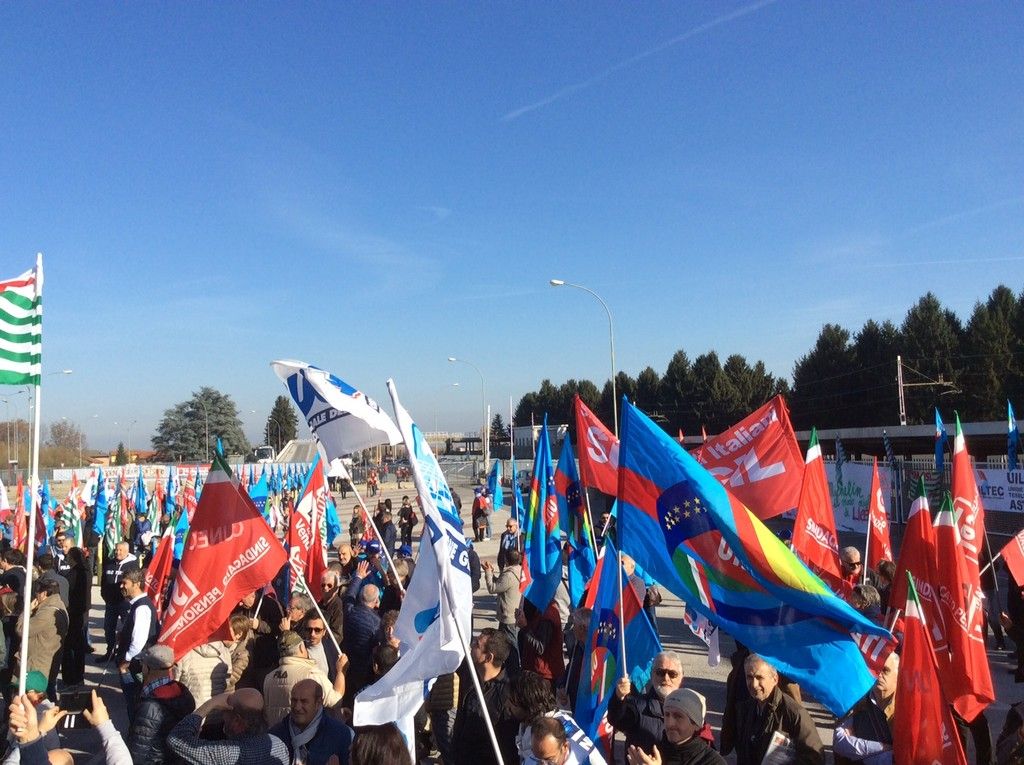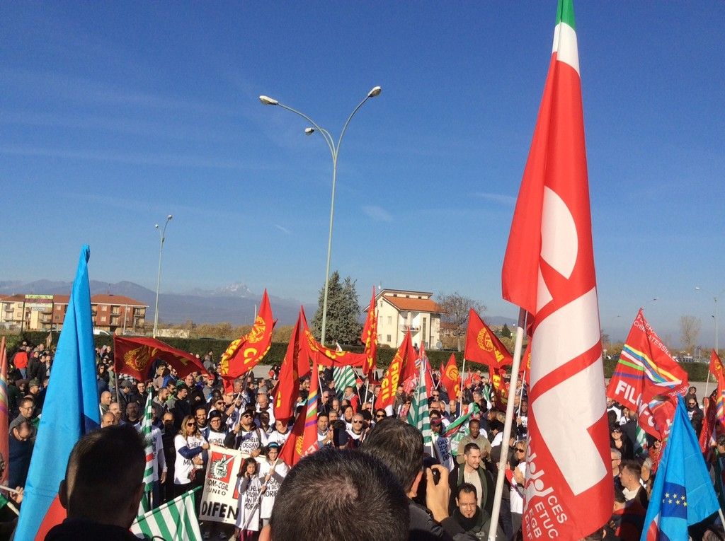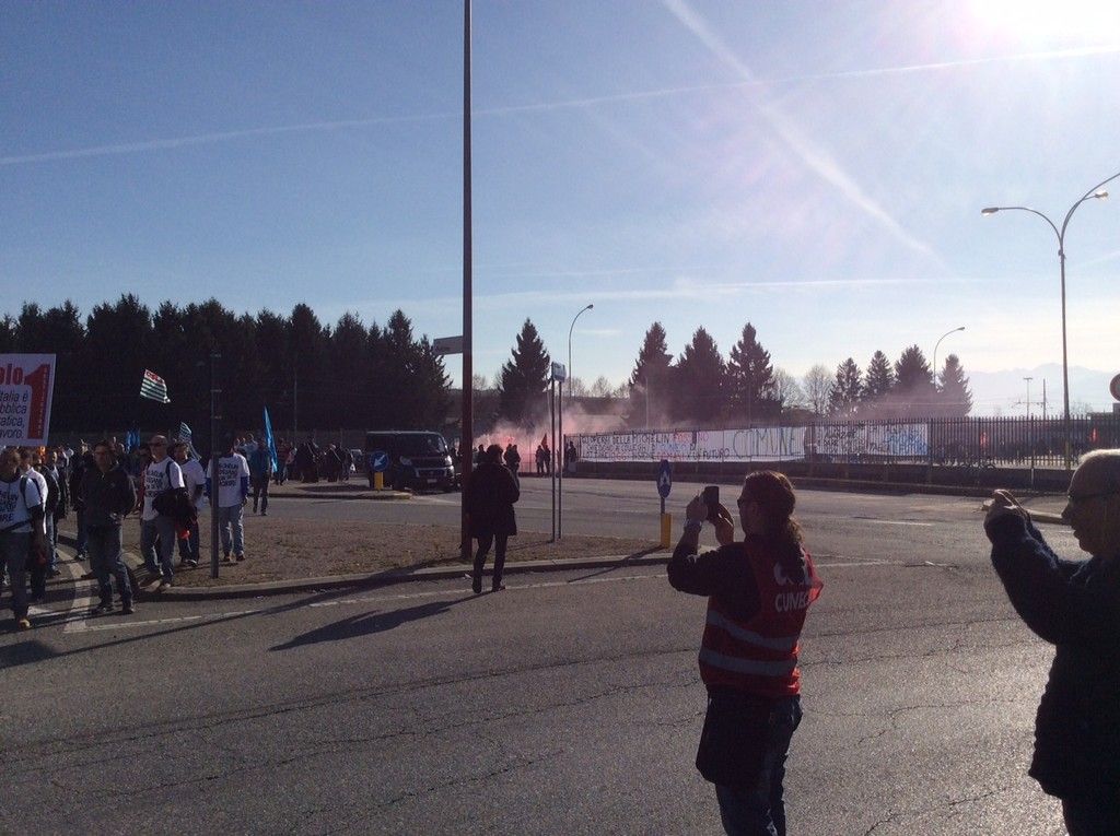 Un corteo di oltre 500 metri. Tante le sigle coinvolte, tanta solidarietà anche da altre aziende del territorio (Gec, Cometto, Bottero, Alstom su tutte). Si parla di 2.000 manifestanti.