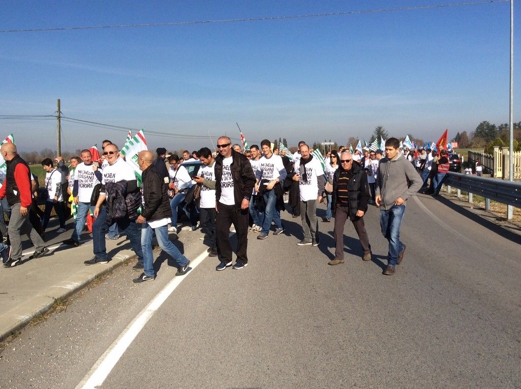 E' iniziata ufficialmente la manifestazione di lotta: ci sono uomini e donne di Torino, Cuneo, Alessandria e Fossano, delle aziende di somministrazione e tutte le sigle sindacali. I lavoratori richiedono un nuovo piano industriale e la difesa dei posti di lavoro e affermano: "Da lunedì o la Michelin cambia idea o la lotta sarà sempre più dura!"