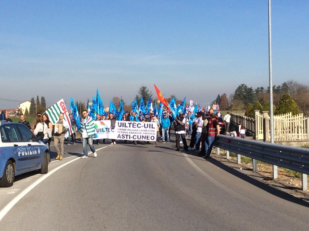 Si terrà in questa occasione un corteo dove sono giunti a sostegno anche i dipendenti di Fossano, Torino e Alessandria e le delegazioni di lavoratori ed attivisti sindacali degli altri stabilimenti del Gruppo. Le forze di Polizia, presenti in gran numero sul posto, hanno comunicato che il corteo andrà fino alla rotonda del Big Store di Madonna dell'Olmo e che le macchine dei lavoratori provenienti da Fossano procederanno lentamente per rallentare il traffico. Sul posto anche i lavoratori di Alstom Ferroviaria.
