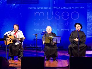 A metà serata si sono esibiti anche i cantori francesi della regione del Périgord che hanno premiato il senatore albese Tomaso Zanoletti, Antonella Parigi, assessore alla cultura della regione Piemonte, e Luciano Bertello, ideatore del festival, come cavalieri dell’ordine del tartufo francese.