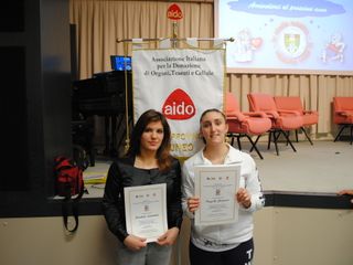La consegna del premio, del valore di 200 euro, da parte dell'AIDO Sezione Provinciale di Cuneo è stata concretizzata per mano di Erica Boetti, figlia della donatrice Simona, alla studente/atleta Eleonora Vazzotti di Carrù. La seconda borsa invece ha visto la presenza di entrambi i genitori di Fabio che con la mano del dirigente AIDO Sergio Provera hanno consegnato a Samanta Fiandino di Cuneo l'ambito premio.Presenti in sala per dar degno onore e valenza alla manifestazione gli Assessori della Città di Bra Massimo Borrelli, Luciano Messa e Giovanni Fogliatto. Per il Comune di Carrù l'Assessore allo Sport Nicola Schellino.