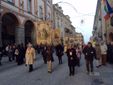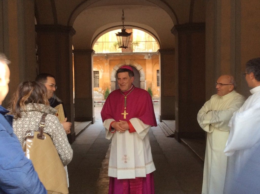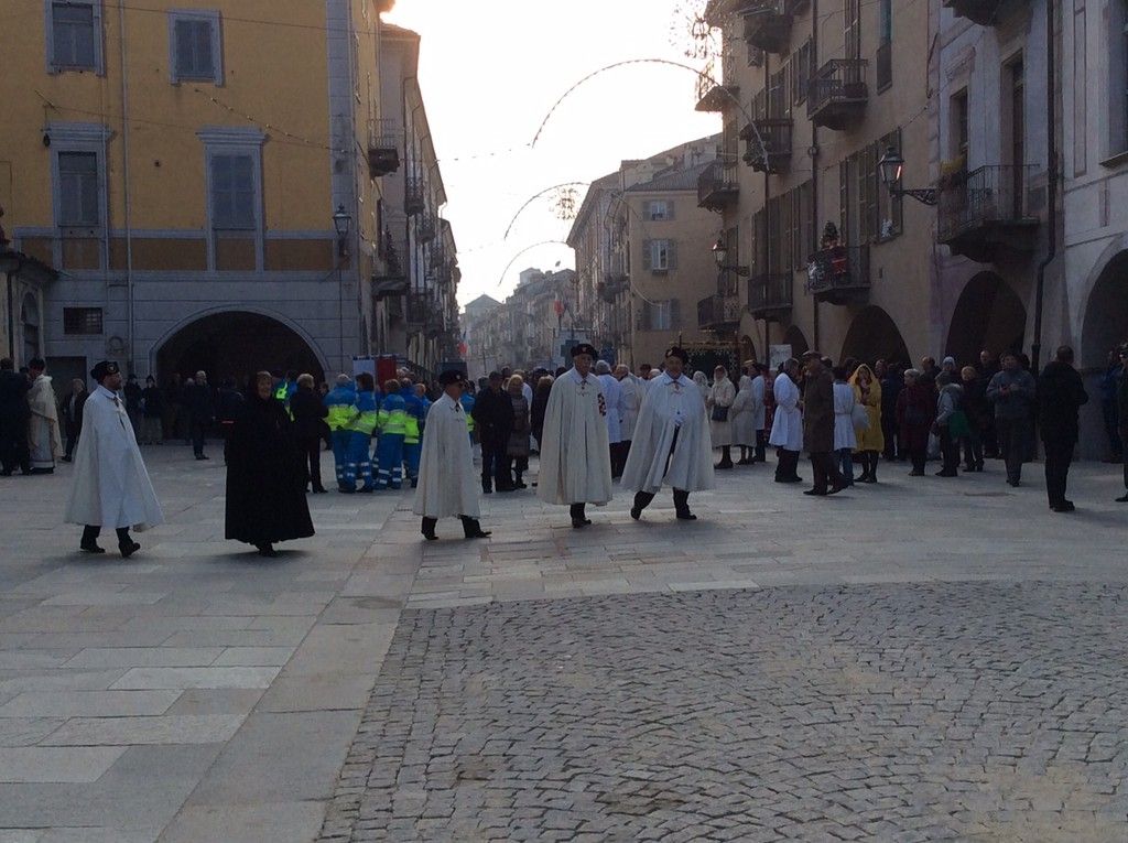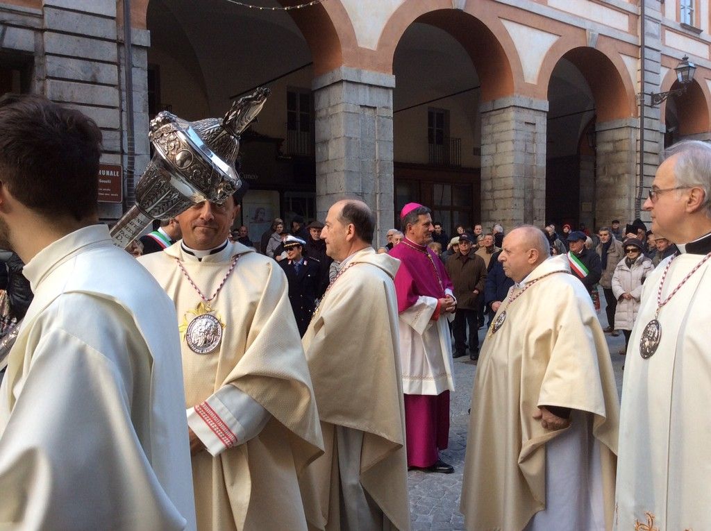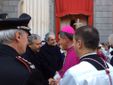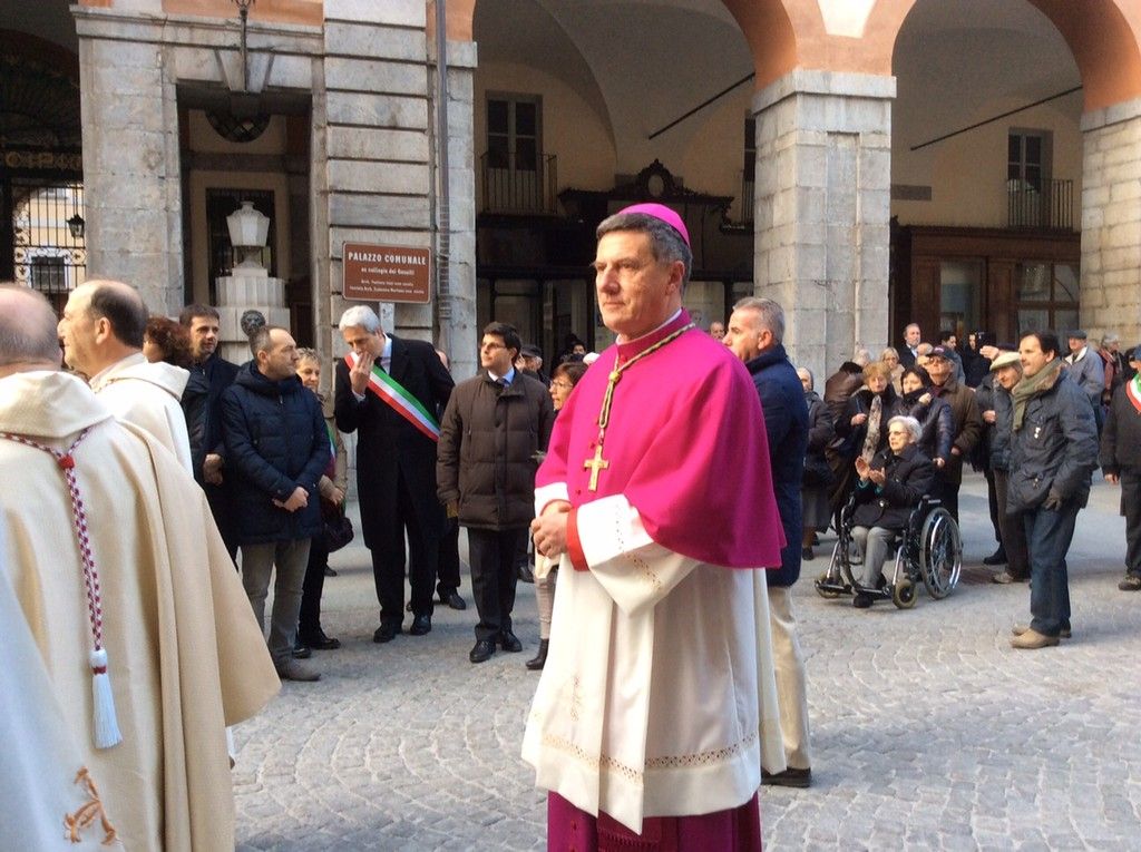 Monsignor Delbosco si è fermato a salutare tutti, stringendo mani e abbracciando vecchi conoscenti. Con l'accompagnamento della banda, la processione è giunta prima di fronte al Municipio, dove ad attendere il neovescovo c'era il sindaco assieme a diversi membri della Giunta, e poi al Duomo, dove erano presenti il Prefetto, il Questore, il comandante dell'Arma provinciale, quello della Forestale e tantissime autorità, oltre che molti sindaci della zona.