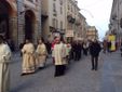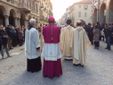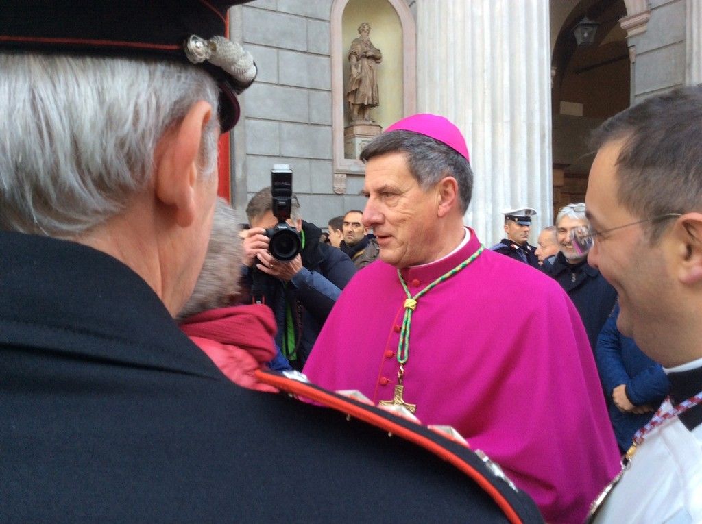 Il neo vescovo, accompagnato dal capitolo dei canonici della Cattedrale e dai sacerdoti del collegio dei consultori, ha percorso via Roma partendo dalla sede vescovile fino al Duomo, tra gli applausi di due ali di folla.