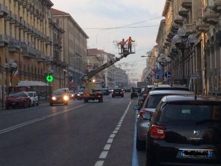 Stamattina in corso Nizza a Cuneo è iniziata la fase di rimozione delle luminarie natalizie. Un segno fin troppo evidente che le Feste sono finite.