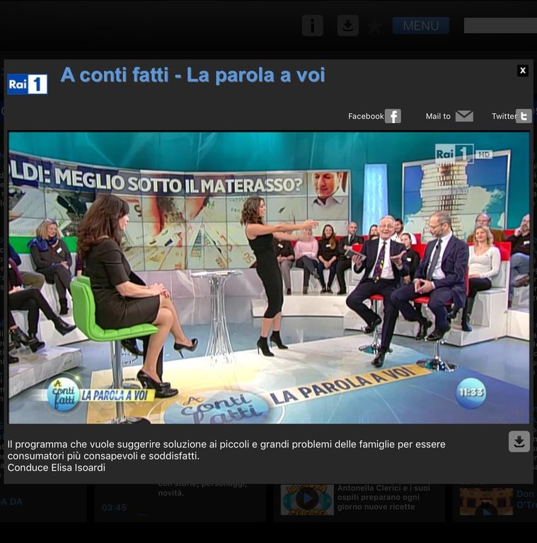 Nel corso della trasmissione di martedì 19 gennaio, il Banchiere fossanese, in cima alla classifica del portale multimediale Ibs per la categoria narrativa su Economia & Management, si soffermerà ulteriormente sulle terminologie oggi in voga a seguito dei provvedimenti economico finanziari del Governo in materia di banche e di tutela dei risparmiatori, sulla base di una sempre maggiore domanda di chiarezza che giunge da più ampi strati sociali del pubblico di telespettatori.