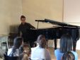 Alla presentazione meccanica è poi seguita la presentazione del repertorio, aperta da una studentessa liceale. Dal classico al moderno, da Bach a Keith Emerson, passando per Mozart, Schumann, Chopin, Joplin, blues, rock... Le sapienti dita di Daniele Trucco hanno trascinato gli allievi a spasso nei secoli, mettendo in luce continuità e cesure tra stili e epoche storiche.