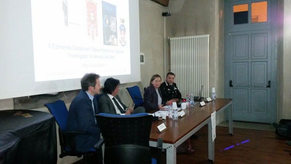 Sono intervenuti in veste di relatori il Maggiore Guido Barbieri, Comandante del Nucleo Carabinieri Comando Tutela Patrimonio Culturale del Piemonte-Valle d’Aosta che ha illustrato le attività istituzionali del Nucleo a livello locale e nazionale, e la professoressa Maria Paola Azzario, Presidente della Federazione Italiana dei Centri e Club per l’Unesco, Vice Presidente della Federazione Europea dei Centri e Club per l’Unesco e Membro Direttivo Federazione Mondiale dei Centri e Club per l’Unesco che ha esposto le attività dell’Unesco a tutela del patrimonio storico artistico.