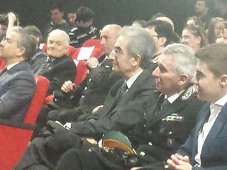 Una platea di oltre 300 bambini delle medie dietro ad grande parterre istituzionale politico e militare con gli alti vertici dei Carabinieri, il vescovo Monsignor Giuseppe Guerrini, prefetto, questore e procuratore della Repubblica di Cuneo, iGuardia di Finanza e Forestale.