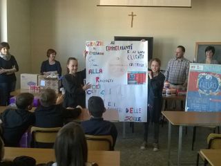 Al termine dell'incontro, una rapida merenda per tutti i presenti, ancora una volta offerta dagli esercenti: occasione ben accolta specialmente dagli alunni presenti, che li hanno anche ringraziati con un simbolo cartellone. Ringraziamenti anche da parte dell'amministrazione comunale, nella persona del vicesindaco Vilma Ghigo.