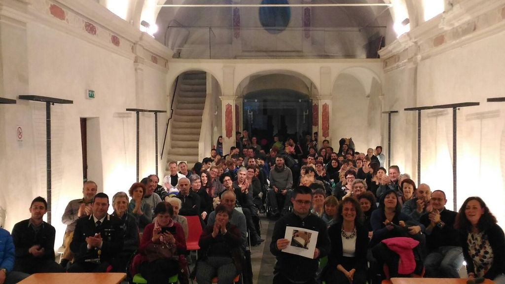 E’ stato un momento profondamente toccante: una sala gremita di persone partecipi e commosse. Qualche discorso, qualche video, tanti applausi, ma soprattutto le parole intense ed emozionate di Davide, che ha ringraziato la sua comunità per il sostegno che gli ha dato finora e ha chiesto, in modo semplice e diretto, di non essere lasciato solo in questo suo percorso da adulto. Questa crescita, il cambiamento, il futuro che si è fatto ogni giorno più concreto e vicino è stato infatti frutto di una spinta collettiva: tutto il paese ha sostenuto Davide nel suo percorso.