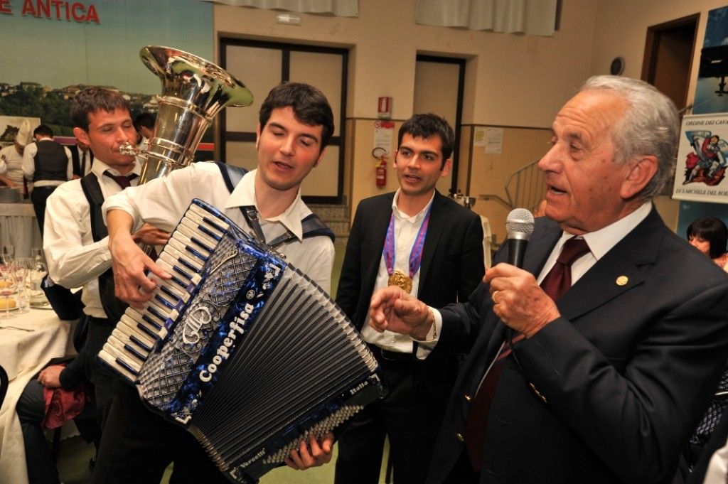 Benvenuti quindi i neo- cavalieri Giorgio Cornero, imprenditore agricolo; Antonio Coscia, viticoltore; Riccardo Pezzuto, maresciallo dei Carabinieri; Michele Simionato, autotrasportatore. La cena sociale L’ampio Salone delle Manifestazioni, elegantemente addobbato, ed un brillante catering hanno accolto la tradizionale conclusione conviviale con un ricco aperitivo, un menu raffinato, scoppiettanti esibizioni musicali dei “Fòra ‘d Tuva”, canti e danze fino a tarda notte.
