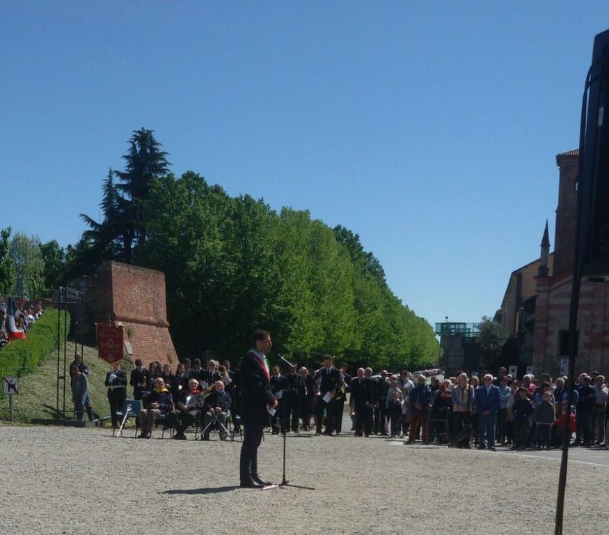 Fossano ha celebrato ai bastioni, davanti al monumento ai Caduti, il suo 25 aprile. E' toccato al sindaco Davide Sordella ricordare il ruolo della città durante la Liberazione. Molti i partecipanti, alcuni sempre testimoni di giorni che la memoria non deve dimenticare.