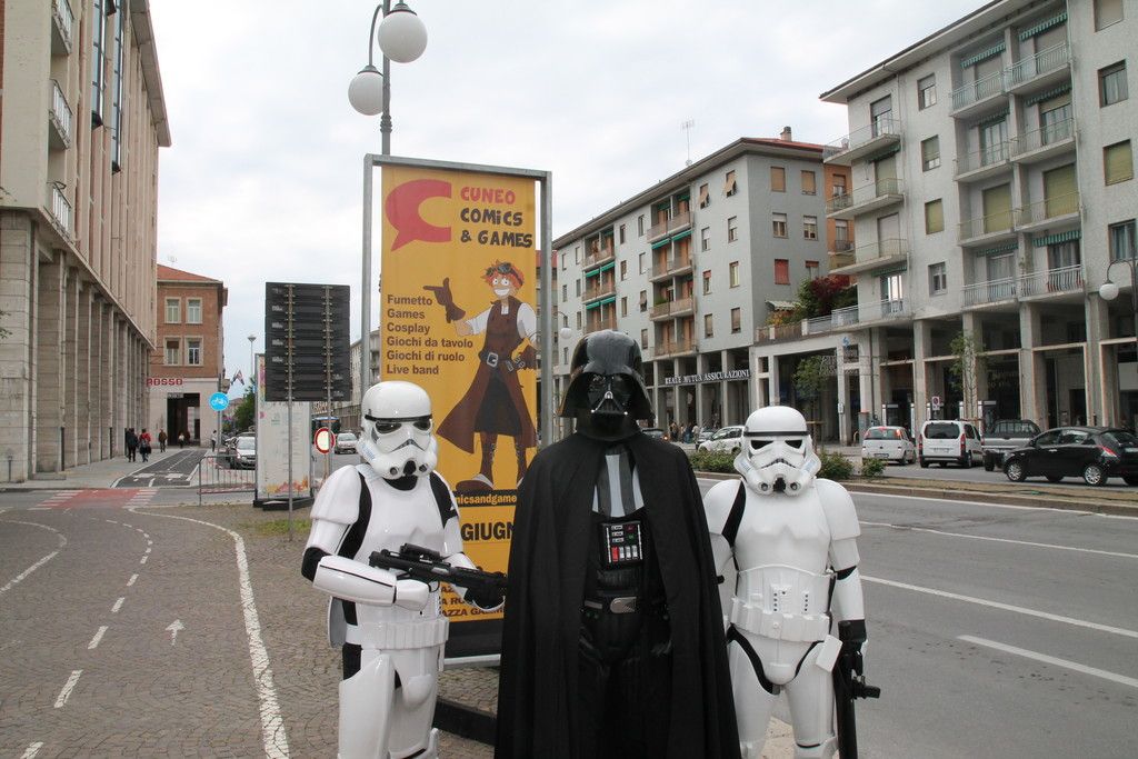 Erano mascherati da cattivi di Star Wars per promuovere la prima edizione del “Cuneo Comics and Games”, ma qualche cuneese li ha presi per terroristi. Tre chiamate allarmate alla Polizia hanno scatenato il panico a Cuneo.