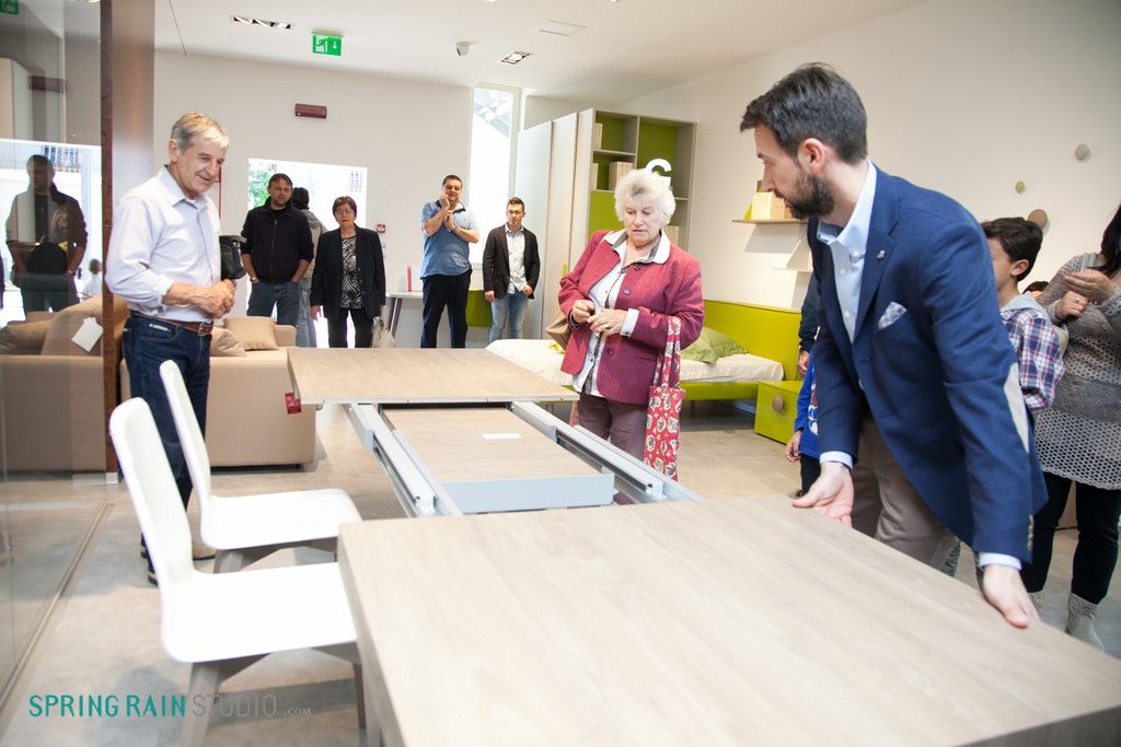 Momento commovente se si pensa al duro lavoro che ha comportato il progetto, ora apprezzato dalle centinaia di visitatori che hanno scelto di condividere con loro questa splendida giornata, insieme ovviamente ad amici, parenti, clienti affezionati. Dopo il classico taglio del nastro, si sono aperte le porte ed è stata presentata la collezione design 2016-2017. All’interno della struttura nulla è lasciato al caso: gli ambienti sono disposti con logica ed accuratezza, gli spazi calcolati, l’illuminazione curata nei dettagli.