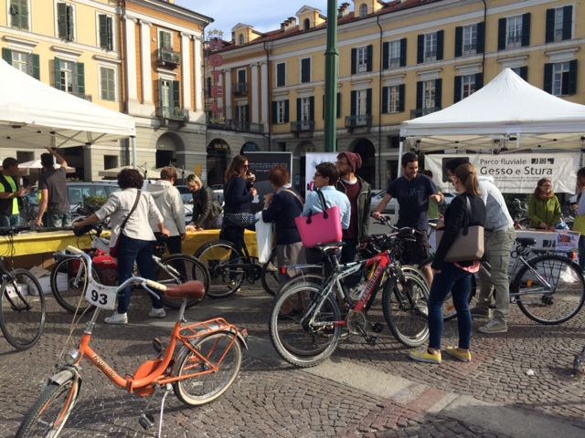 In bici ma in abiti da lavoro. Non è un evento raro a Cuneo, città dove sono in molti a muoversi sulle due ruote. Oggi, però, è la loro giornata, internazionalmente celebrata dal "Bike to work day".