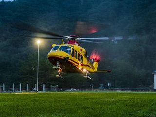 Ieri sera le prove tecniche per il collaudo del sito di atterraggio, adiacente la sede della Protezione Civile, davanti a tante autorità, associazioni e persone che hanno ammirato il velivolo dell’emergenza sanitaria