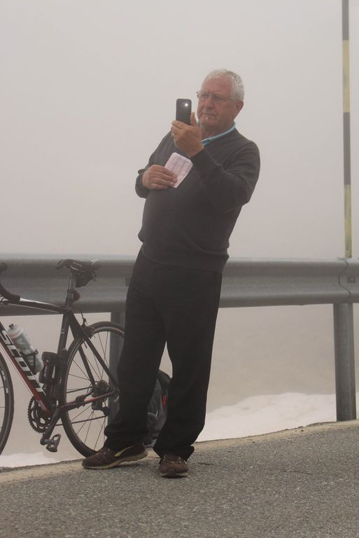 Giuseppe Coppola è un arzillo 72enne di Ruviano, provincia di Caserta, e da 36 anni segue il Giro d'Italia con la moglie Carmela. I due camperisti oggi sono a pochi chilometri dal Colle dell'Agnello, e come ogni giorno dal 6 maggio scorso seguono i campioni sulle due ruote.