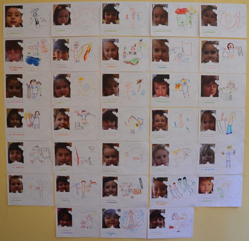 Attraverso l’aiuto di disegni, testi e illustrazioni e con l’aiuto dei materiali più diversi, i bambini hanno dato libero sfogo alla propria fantasia esprimendo se stessi e i propri desideri e provando ad immaginare il proprio futuro. Alla classica domanda “Cosa farai da grande?” i bambini hanno fatto volare la propria mente riflettendo insieme agli insegnanti sulle reali motivazioni di ogni scelta. Medico, pompiere, poliziotto o pilota di aerei: sono solo alcuni dei mestieri che i più piccoli hanno immaginato e che hanno permesso a insegnanti e genitori di comprendere meglio le propensioni dei “grandi di domani” e avviare un percorso formativo che li aiuti, in futuro, a valorizzarle nel modo migliore.