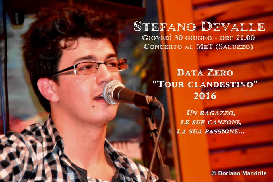 Si terrà giovedì 30 giugno alle 21, al MeT di Saluzzo, la "data zero" del Tour Clandestino del giovane Stefano Devalle.