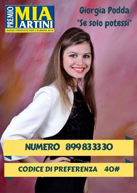 Giorgia Podda, infatti, è una dei tre giovani provenienti dal Piemonte che hanno partecipato agli incontri artistici del Premio Mia Martini tenutisi in Scalea (CS) nel mese di maggio 2016. Lei, una ragazza diciannovenne di Bra che, dopo aver superato la prima fase dei preliminari, ha raggiunto le sfide finali radiofoniche al prestigioso concorso canoro Premio Mia Martini nella categoria “Nuove proposte per l’Europa” con la sua canzone inedita “Se solo potessi”.