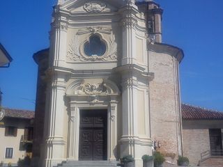 In basso la scritta “Sei in Langa”. In alto lo stemma araldico del Comune di Barbaresco. Poco sotto, a destra, l'orologio del campanile mostra (seppure alcuni in modo parziale) sette numeri su 12. In qualche misura la visione è inaspettata per chi guarda da lontano.