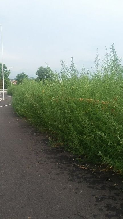 Come si può vedere dalle foto l'erba che costeggia il tracciato ciclabile rende l'attraversamento molto difficile; in merito ho fatto segnalazione al comune di Cuneo a metà dello scorso luglio, ma non sembra che le condizioni siano cambiate affatto. Anzi, ovviamente l'erba ha continuato a crescere.