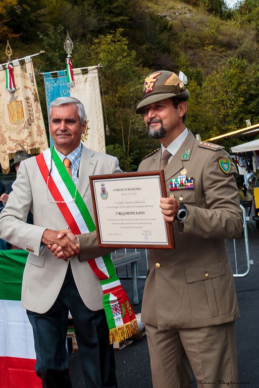 Oggi per Roaschia è un giorno di festa, di orgoglio, di riconoscimento e di ricordo. Con grandissimo onore come Sindaco, a nome di tutta l'Amministrazione Comunale e dei cittadini di Roaschia conferisco la Cittadinanza Onoraria al 2* Reggimento Alpini.