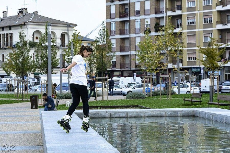 Evoluzioni tra le strade di Cuneo per Barbara Codazzi, recentemente laureatasi campionessa italiana nella Roller Cross Seniores Femminile grazie alla sua performance ai Campionati Italiani di freestyle a Busto Arsizio.