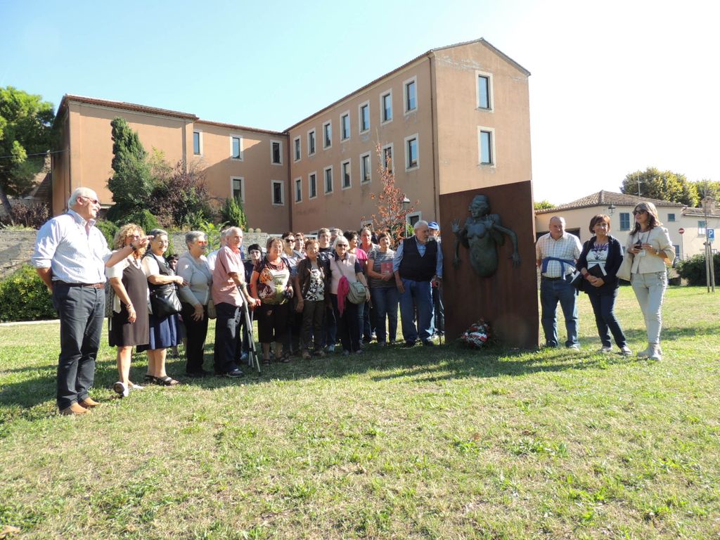 La visita è iniziata, nel primo pomeriggio a Fano, dove, ad attendere la delegazione nei giardini dedicati ai martiri Amilcare Biancheria e Giuseppe Morelli, trucidati nel 1922 dalle squadracce fasciste, vi erano alcuni rappresentanti della locale Sezione ANPI “Leda Antinori”, che prende il nome dalla Staffetta Partigiana deceduta in seguito alle torture subite dai nazifascisti. La delegazione Fanese era guidata dal presidente, Paolo Pagnoni, insegnante presso l’Istituto Alberghiero di Pesaro. Dopo lo scambio dei saluti fra le due delegazioni vi è stata la deposizione dei fiori davanti al monumento alla Resistenza. In seguito, la Signora Manuela, valente guida, ha illustrato il centro storico della città, dove si sono potuti ammirare le mura romane, il duomo e altri interessanti monumenti.