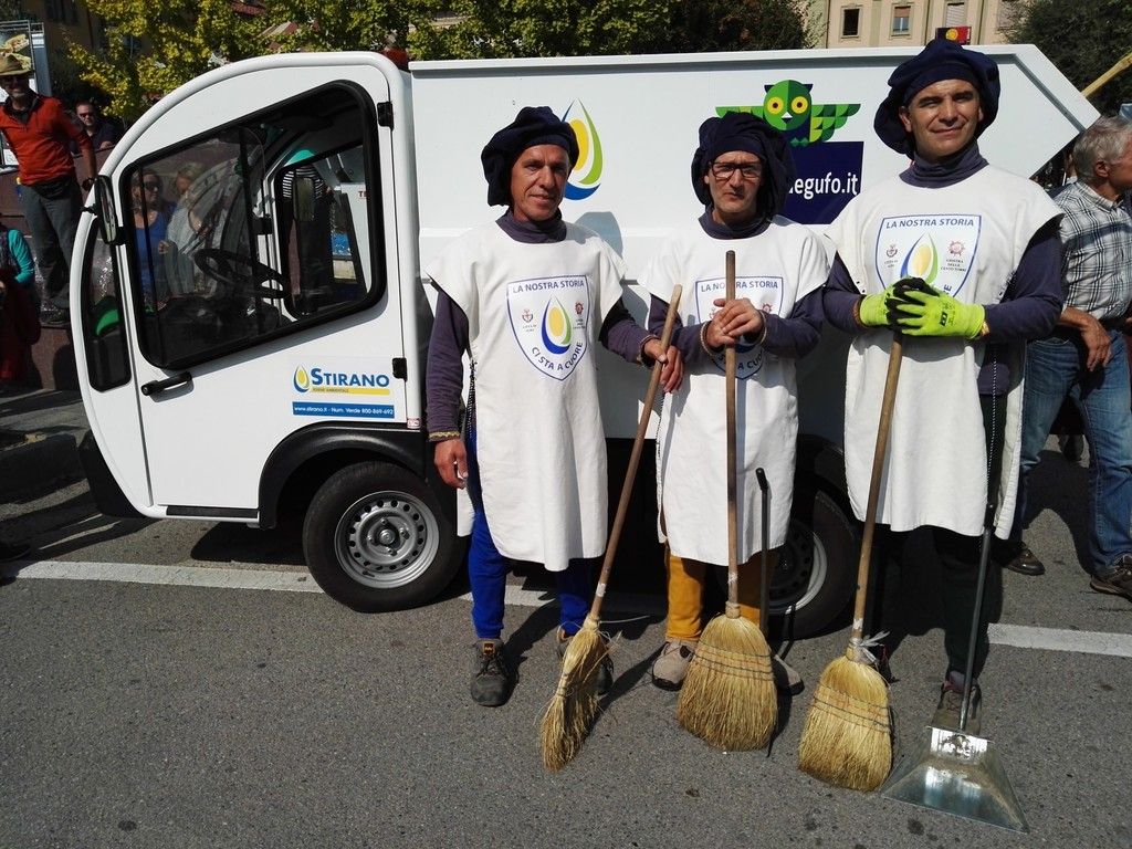 Per la prima volta, nel corso della sfilata medievale che precede la Fiera internazionale del Tartufo bianco d’Alba, è stato eseguito un servizio di pulizia in tempo reale. Al seguito dei circa mille tra figuranti e sbandieratori c’erano infatti tre operatori della Stirano che hanno effettuato un pulizia puntuale e istantanea, calandosi nel clima della storica parata grazie ad abiti medievali riportanti i colori Egea, a testimonianza di come la multiutility abbia “a cuore la storia della città”.