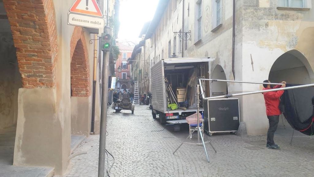 Le riprese hanno interessato ieri via Volta e oggi salita al Castello, nel cuore del centro storico. Paolo Taviani (sul set è assente il fratello) ha girato nel palazzo dei conti Della Chiesa, trasformato in “Cinema Italia” davanti al quale si è svolta una scena con i tre attori principali. Tra loro Luca Marinelli, attore simbolo del nuovo cinema italiano consacrato con "Non essere cattivo" con cui ha vinto il premio Pasinetti (miglior attore alla mostra del Cinema di Venezia) e il David di Donatello, (miglior attore non protagonista) in "Lo chiamavano Jeeg Robot" .